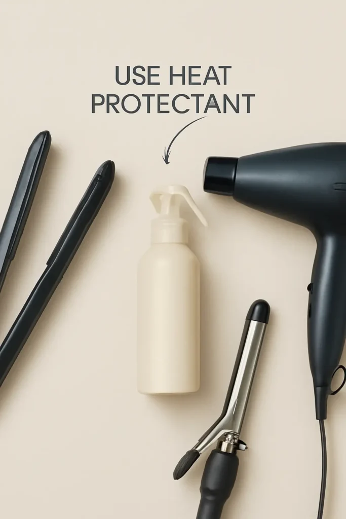 Heat styling tools can be tempting, but they can also dry out your hair even more. If you absolutely need to style your hair with heat, always use a heat protectant spray to shield your strands from damage.